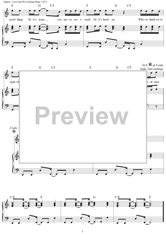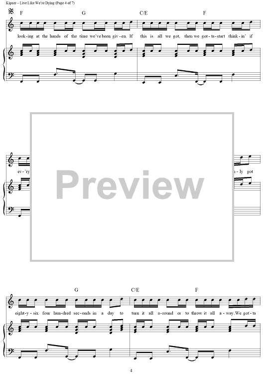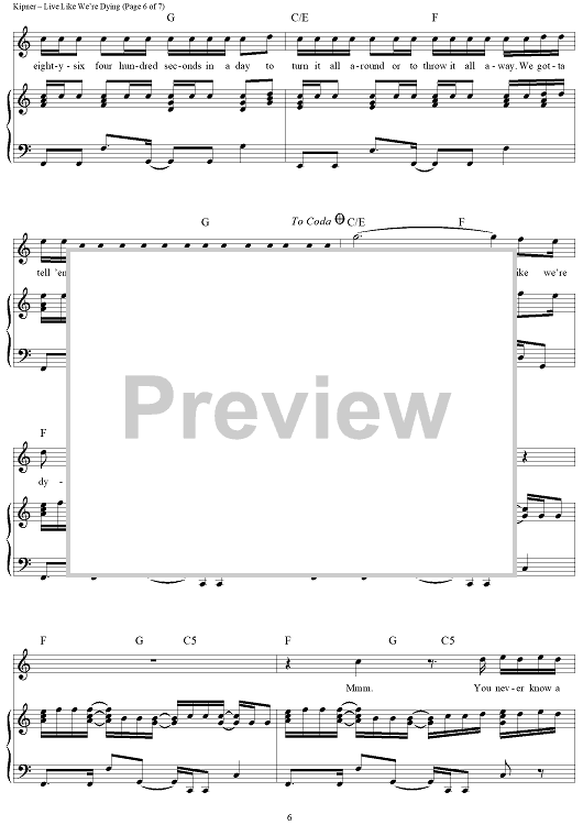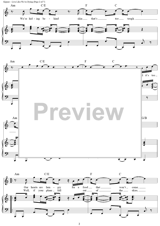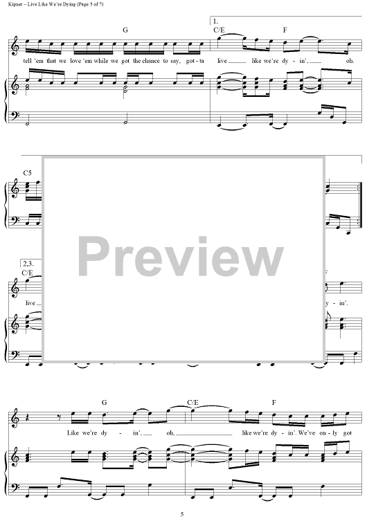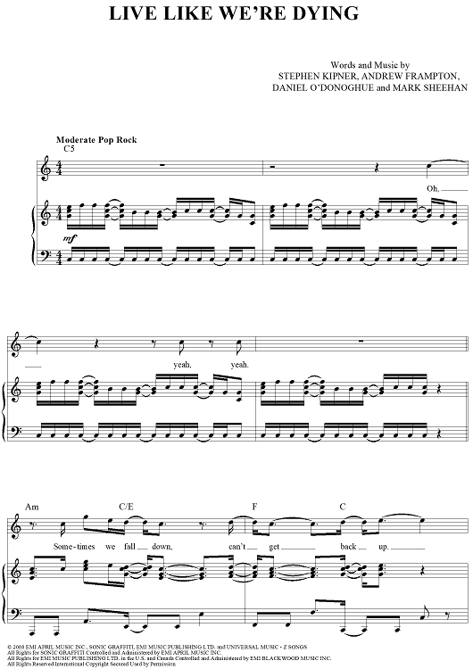 Digital Sheet Music for Live Like We're Dying by Steve Kipner, Kris Allen scored for Piano/Vocal/Chords; id:410184