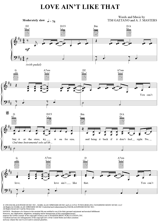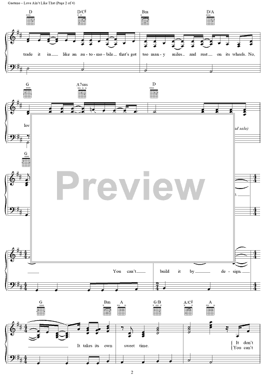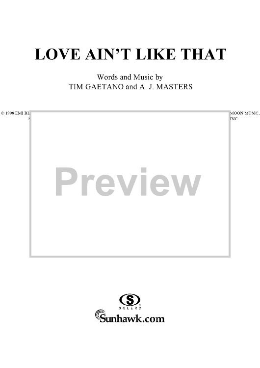 Digital Sheet Music for Love Ain't Like That by Faith Hill, Tim Gaetano, A. J. Masters scored for Piano/Vocal/Chords; id:114215