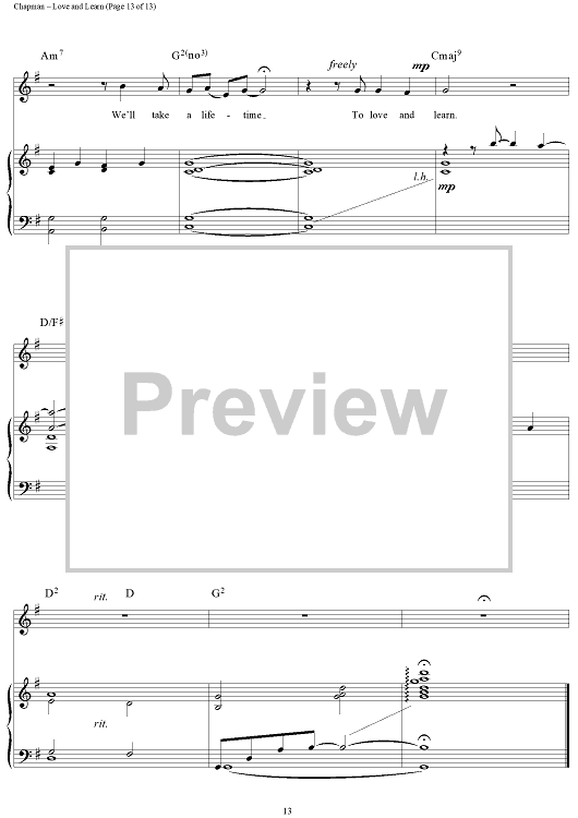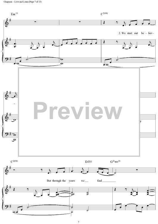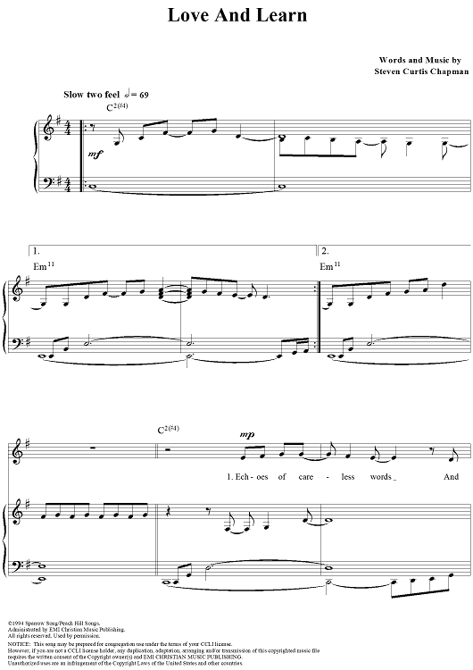 Digital Sheet Music for Love and Learn by Steven Curtis Chapman scored for Piano/Vocal/Chords; id:114349