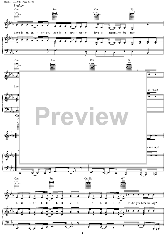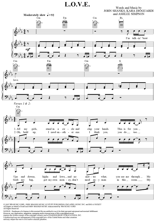 Digital Sheet Music for L.O.V.E. by John Shanks, Kara DioGuardi, Ashlee Simpson scored for Piano/Vocal/Chords; id:315888