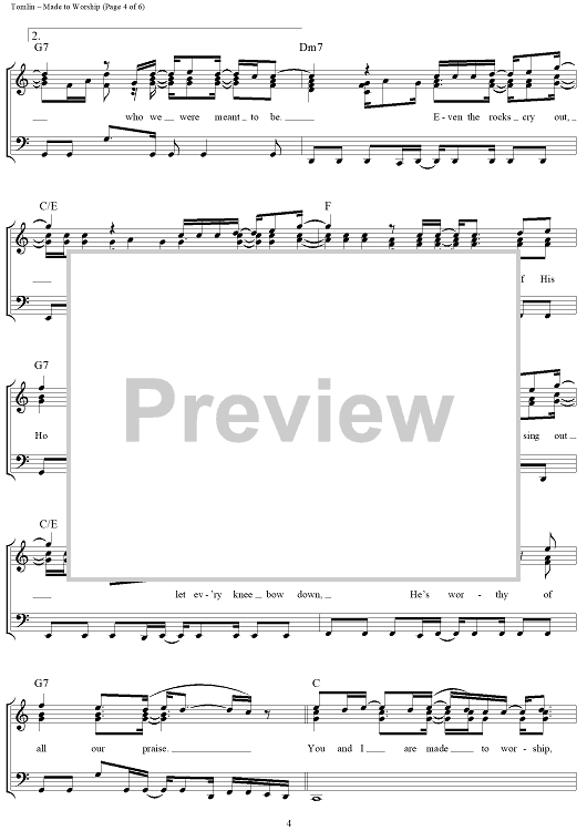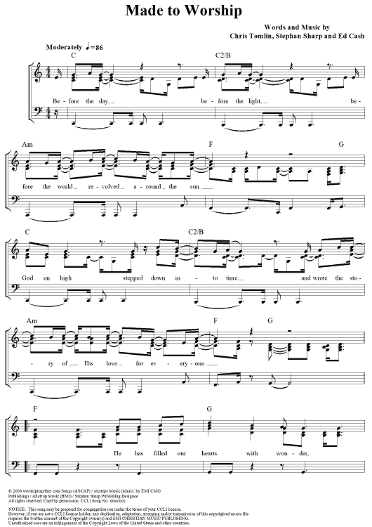 Digital Sheet Music for Made to Worship by Chris Tomlin, Ed Cash, Stephan Sharp scored for Piano/Vocal/Chords; id:355793