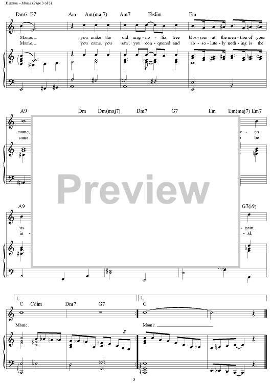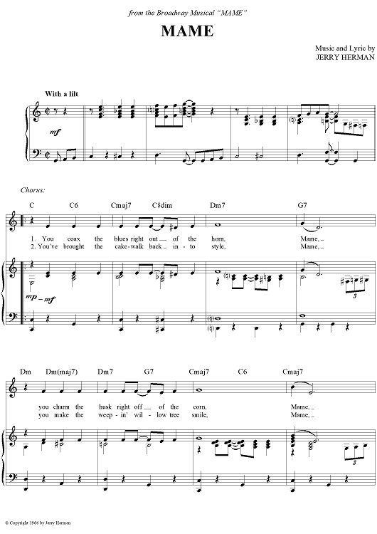 Digital Sheet Music for Mame by Jerry Herman scored for Piano/Vocal/Chords; id:365385