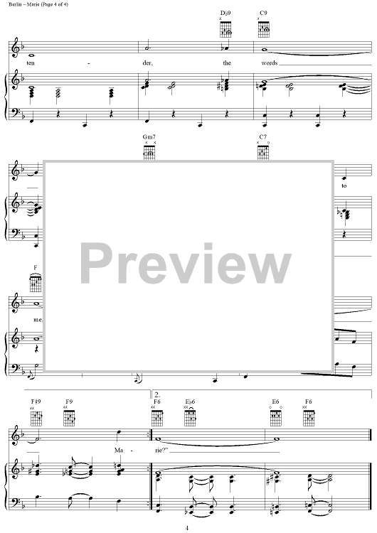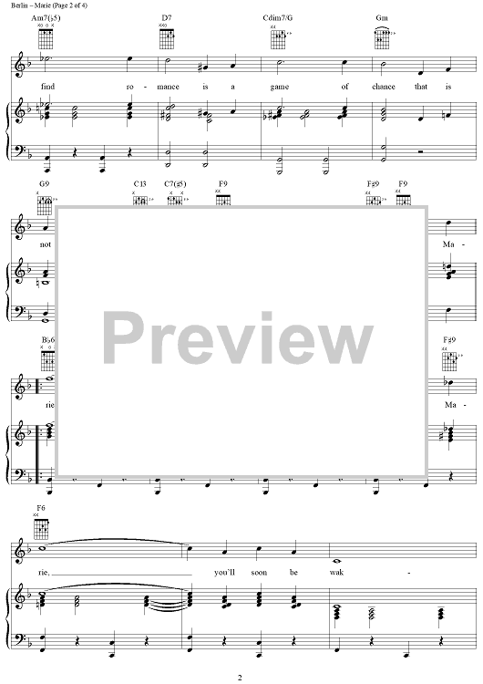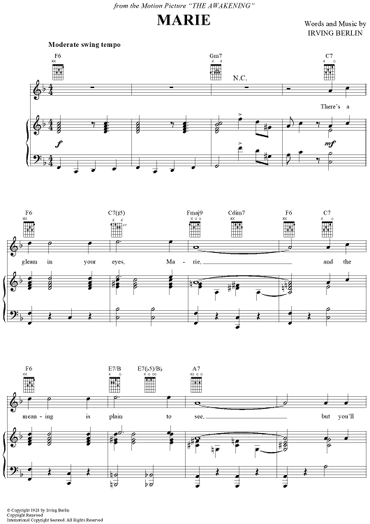Digital Sheet Music for Marie by Irving Berlin, The Bachelors scored for Piano/Vocal/Chords; id:403288