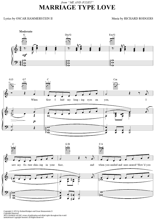 Digital Sheet Music for Marriage Type Love by Richard Rodgers, Oscar Hammerstein II scored for Piano/Vocal/Chords; id:367077