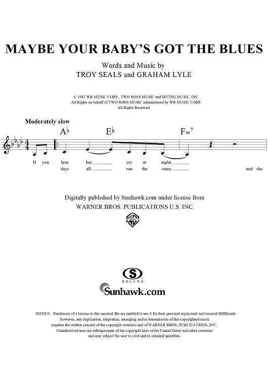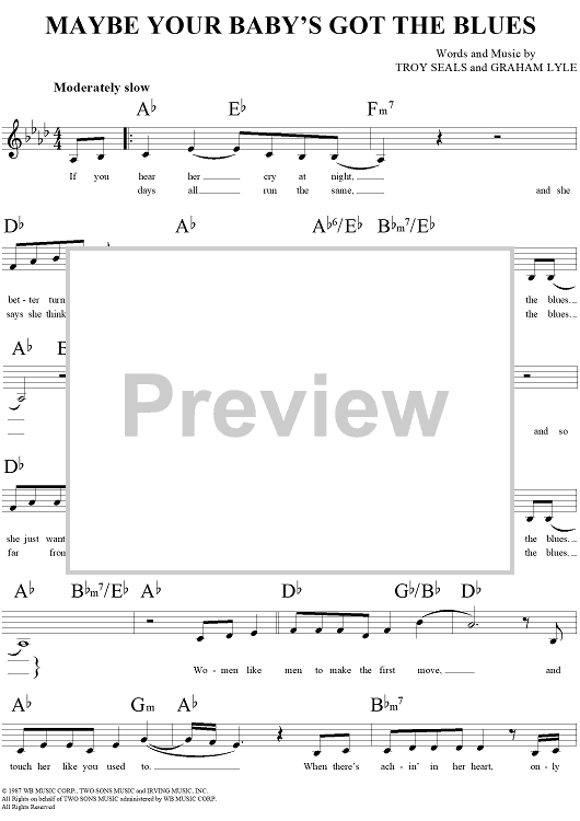 Digital Sheet Music for Maybe Your Baby's Got the Blues by Troy Seals, Graham Lyle, The Judds scored for Lead Sheet; id:234624