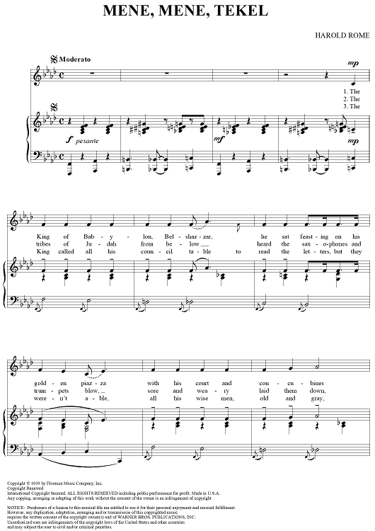"Mene, Mene, Tekel" Sheet Music by Harold Rome