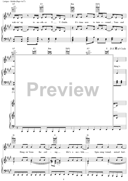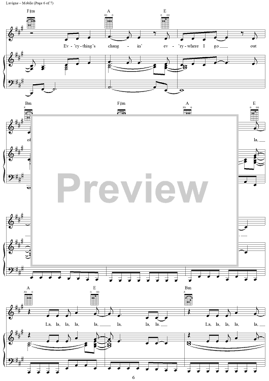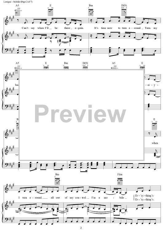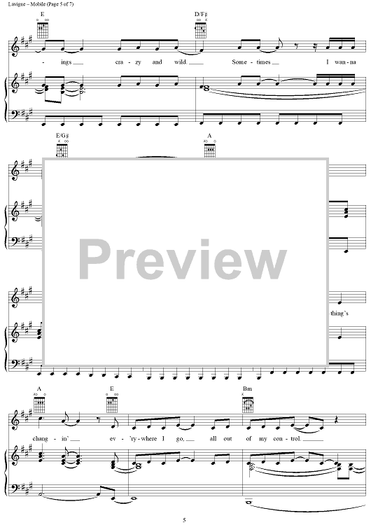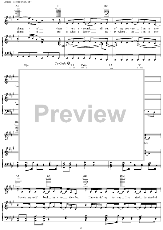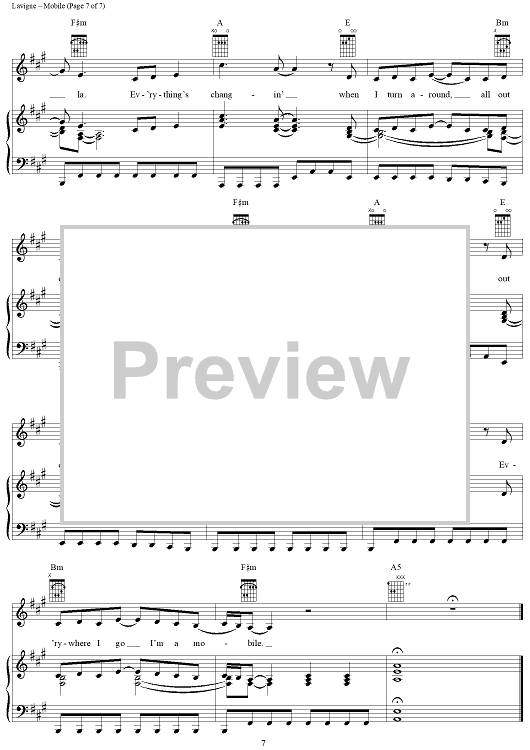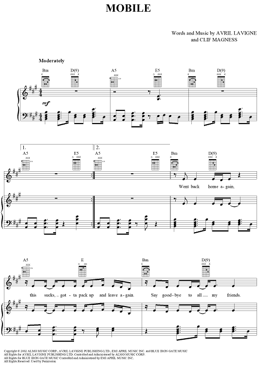 Digital Sheet Music for Mobile by Clif Magness, Avril Lavigne scored for Piano/Vocal/Chords; id:367128