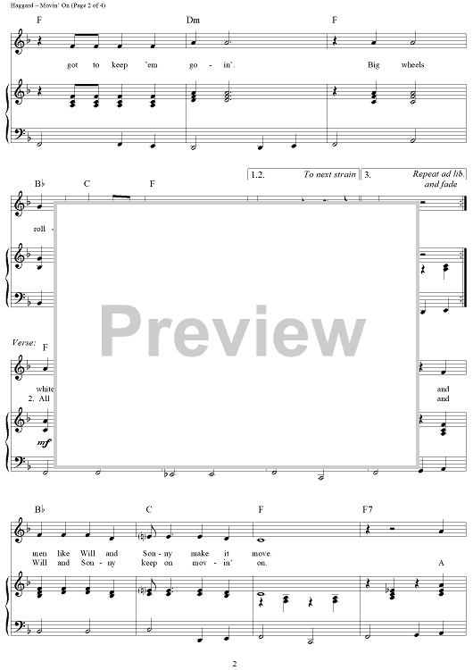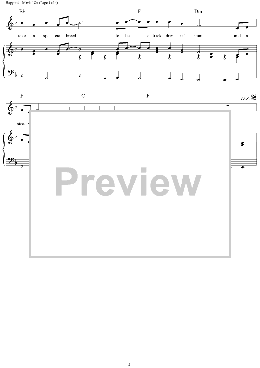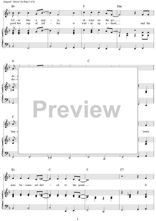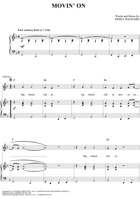 Digital Sheet Music for Movin' On by Merle Haggard scored for Piano/Vocal/Chords; id:362857