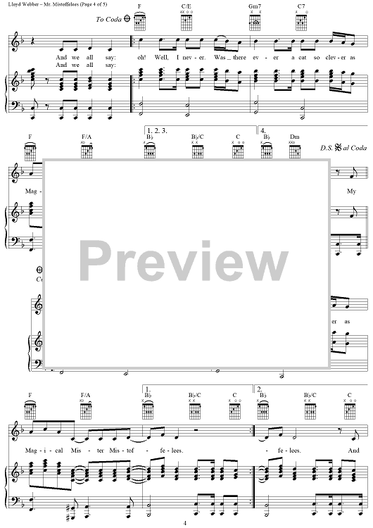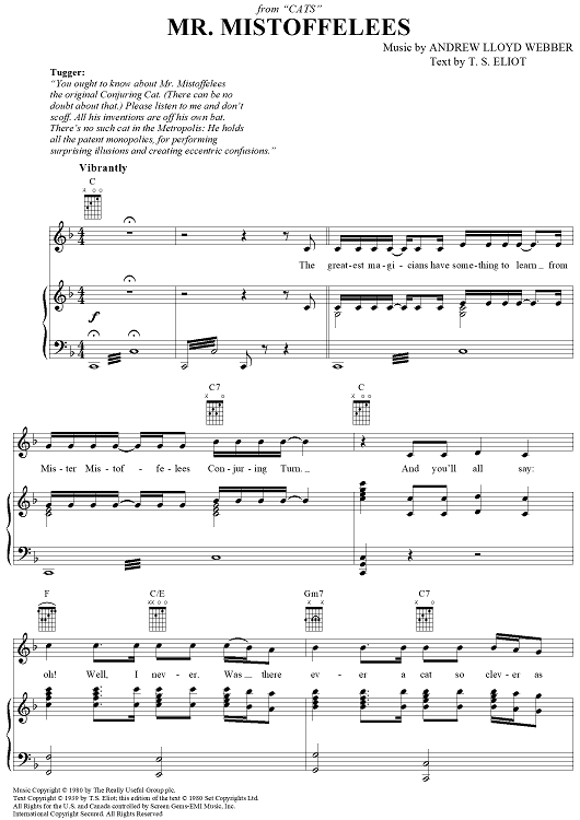 Digital Sheet Music for Mr. Mistoffelees by Andrew Lloyd Webber, T.S. Eliot scored for Piano/Vocal/Chords; id:403169