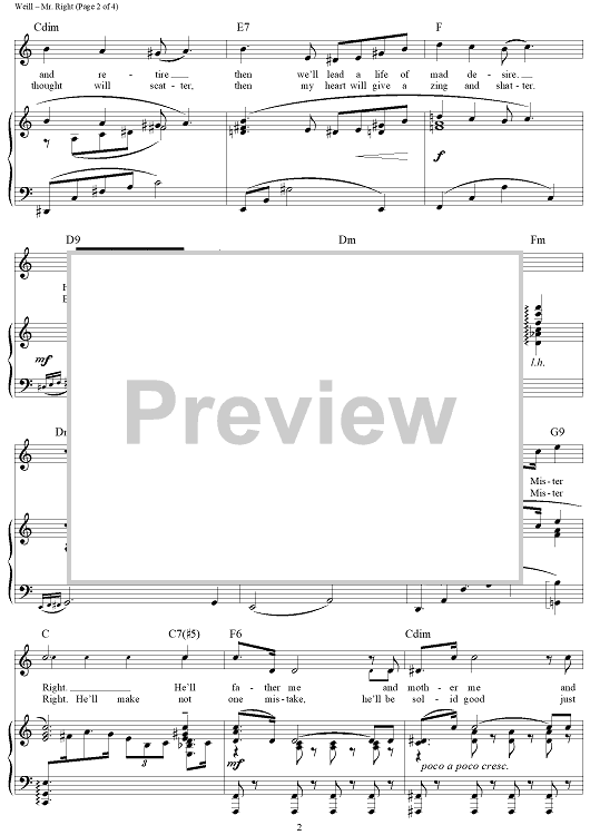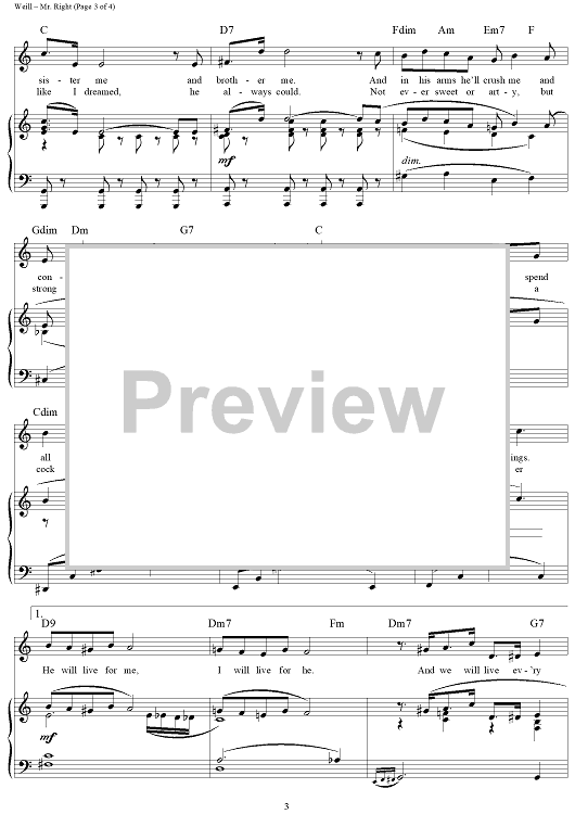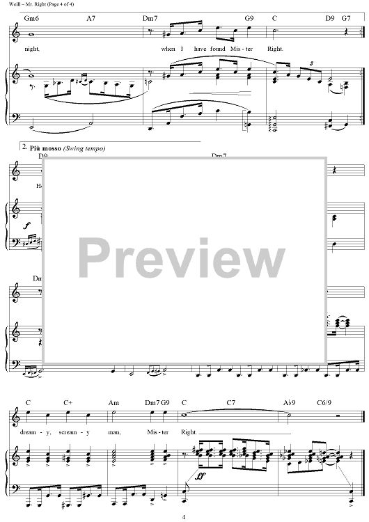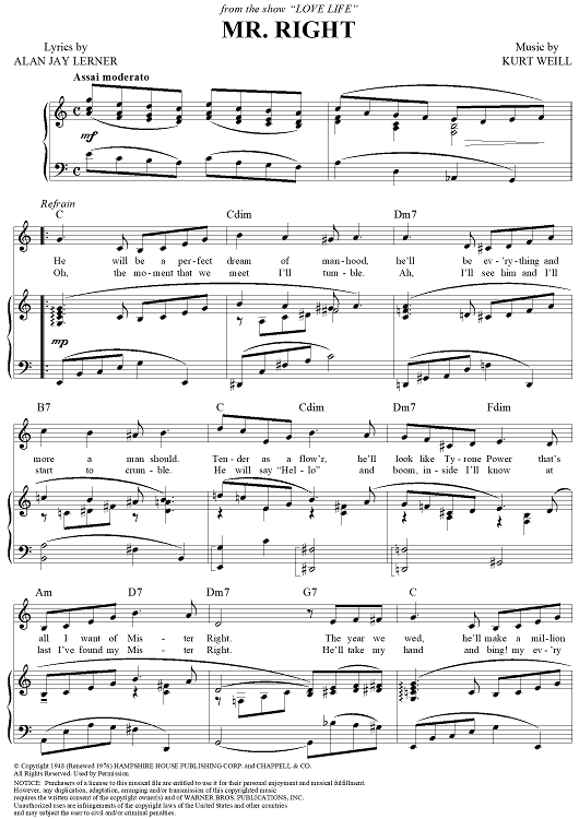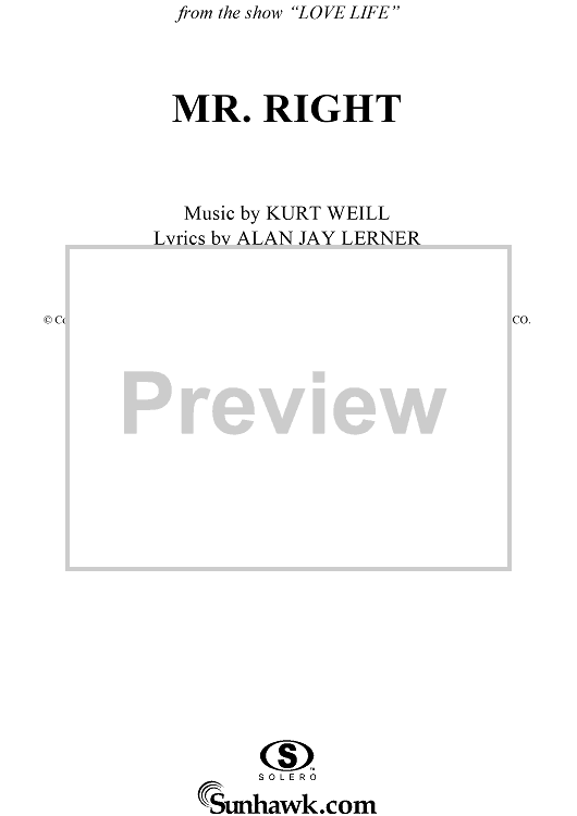 Digital Sheet Music for Mr. Right by Alan Jay Lerner, Kurt Weill scored for Piano/Vocal; id:263539