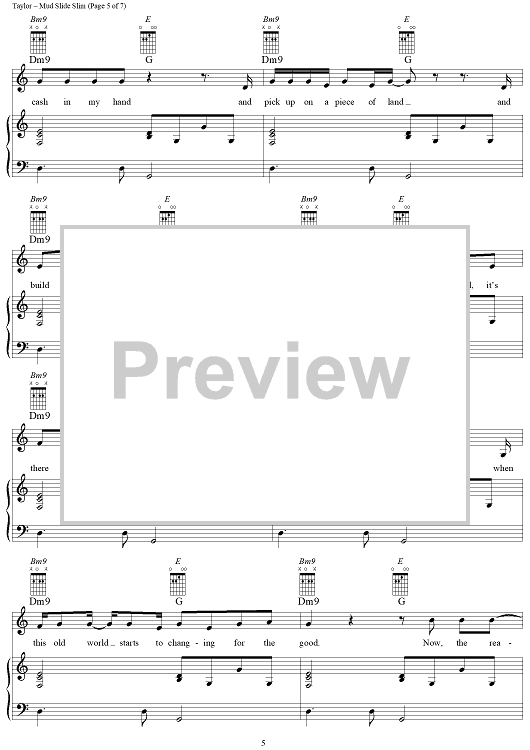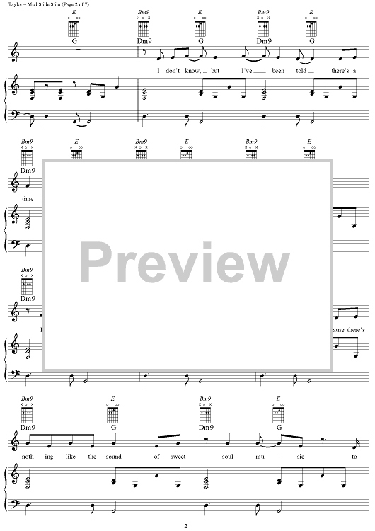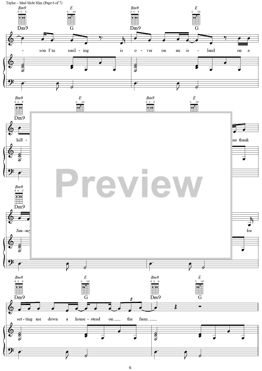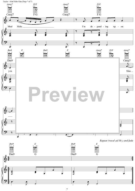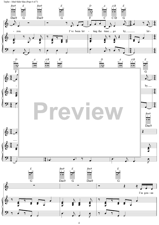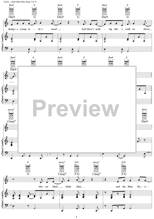 Digital Sheet Music for Mud Slide Slim by James Taylor scored for Piano/Vocal/Chords; id:318649