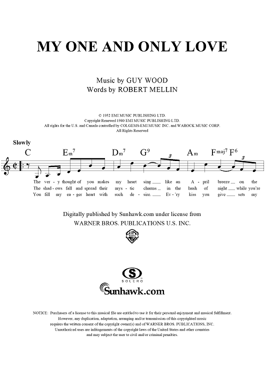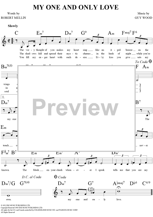 Digital Sheet Music for My One and Only Love by Guy Wood, Robert Mellin, Jeri Southern scored for Lead Sheet; id:263450