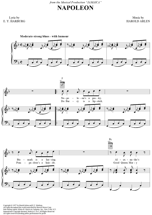 Digital Sheet Music for Napoleon by Harold Arlen, E.Y. "Yip" Harburg scored for Piano/Vocal/Chords; id:366040