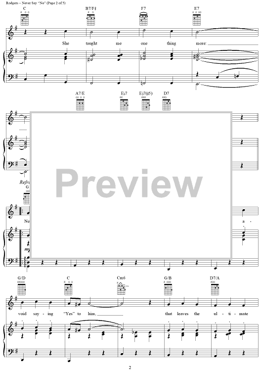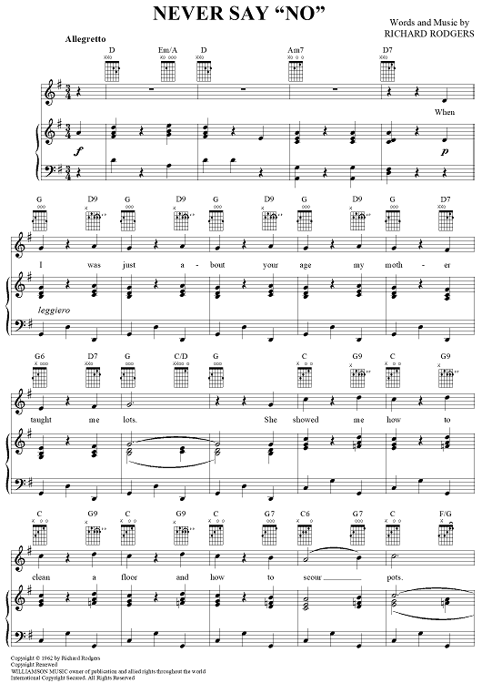 Digital Sheet Music for Never Say "No" by Richard Rodgers scored for Piano/Vocal/Chords; id:367081