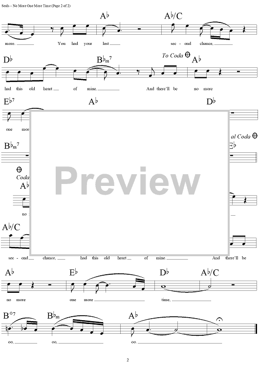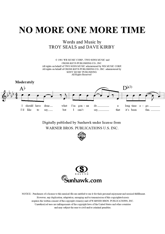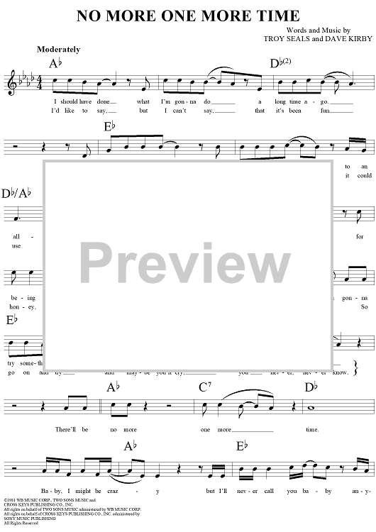 Digital Sheet Music for No More One More Time by Troy Seals, Dave Kirby, Jo-el Sonnier scored for Lead Sheet; id:120654