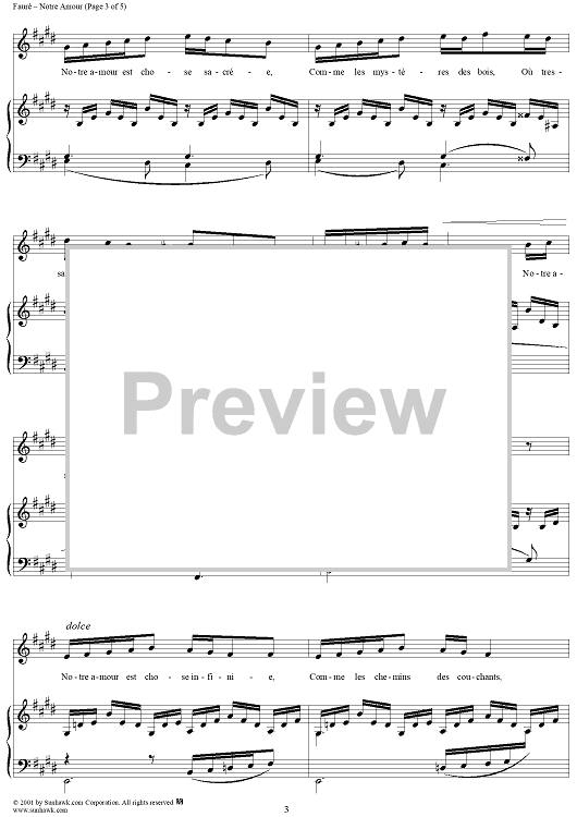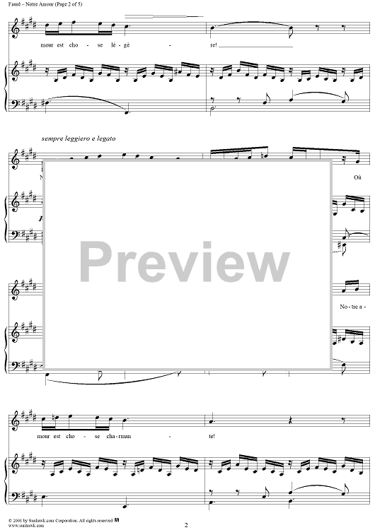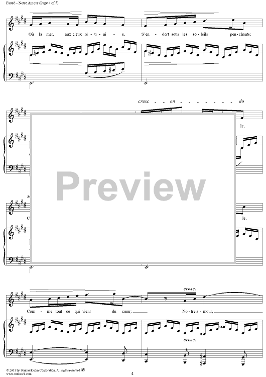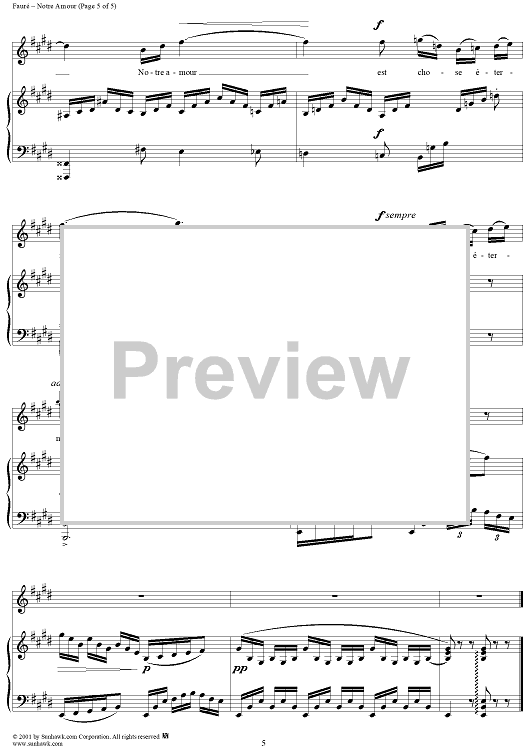 Digital Sheet Music for Notre Amour by Gabriel Fauré, Armand Silvestre scored for Voice/Piano; id:189388