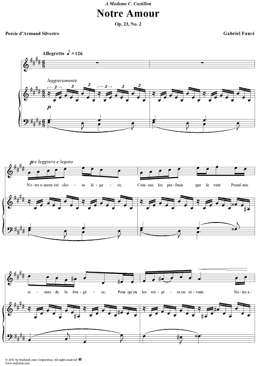 "Notre Amour" Sheet Music by Gabriel Fauré