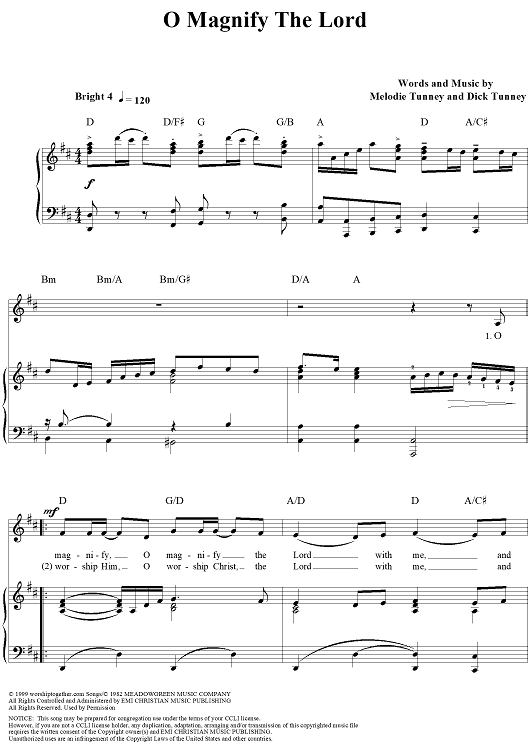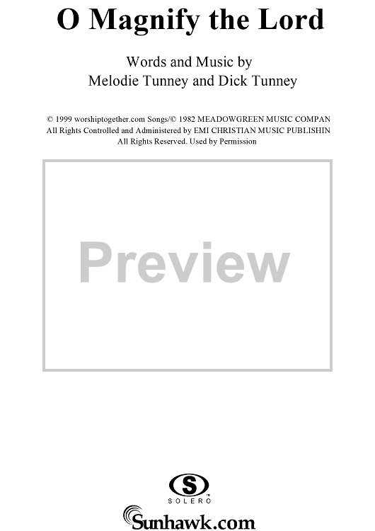 Digital Sheet Music for O Magnify the Lord by Dick Tunney, Melodie Tunney scored for Piano/Vocal/Chords; id:114198