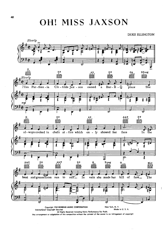 Digital Sheet Music for Oh! Miss Jaxson by Duke Ellington scored for Piano/Vocal/Chords; id:430124