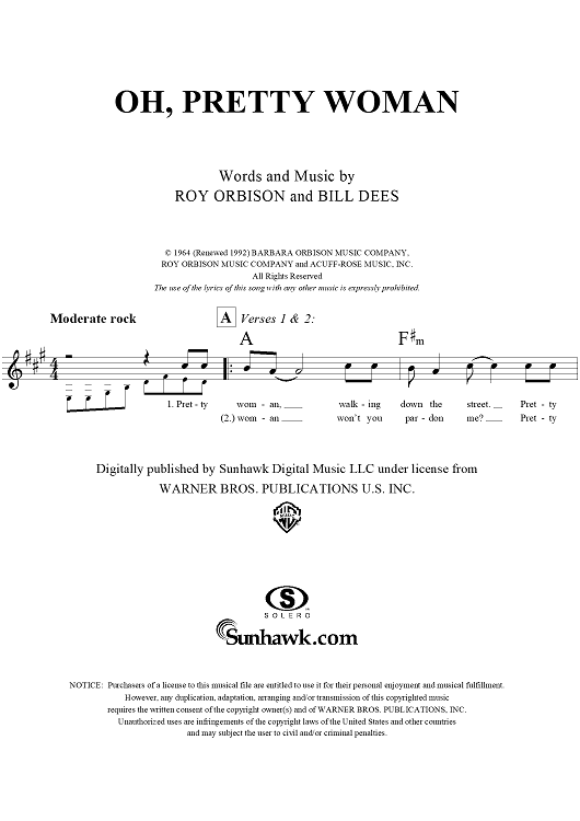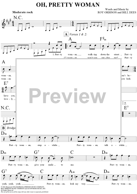 Digital Sheet Music for Oh, Pretty Woman by Roy Orbison, Bill Dees scored for Lead Sheet; id:294018