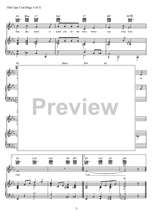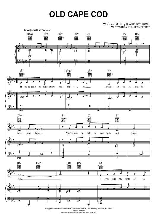 Digital Sheet Music for Old Cape Cod by Patti Page, Claire Rothrock, Milt Yakus, Allen Jeffrey scored for Piano/Vocal/Chords; id:467554