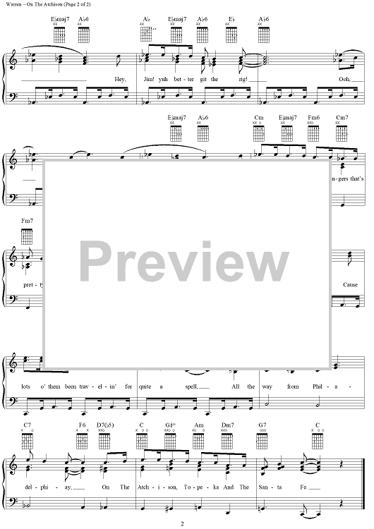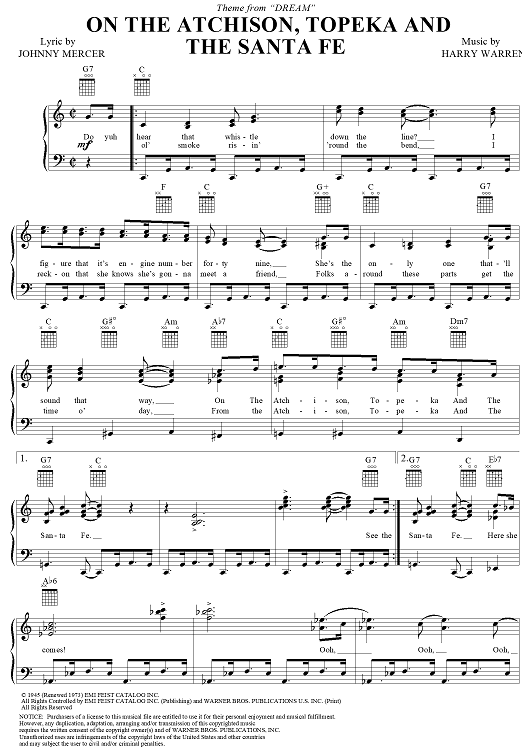 Digital Sheet Music for On the Atchison, Topeka and the Santa Fe by Johnny Mercer, Harry Warren scored for Piano/Vocal/Chords; id:264129