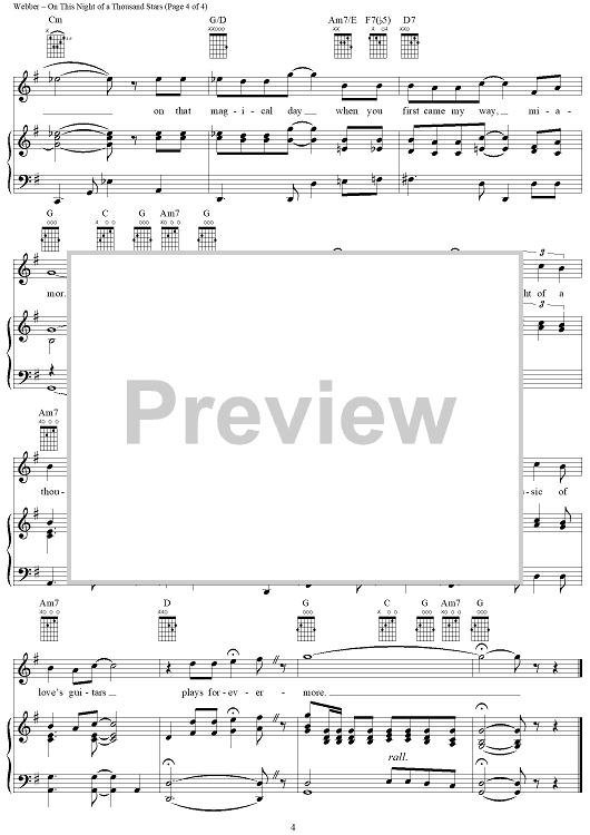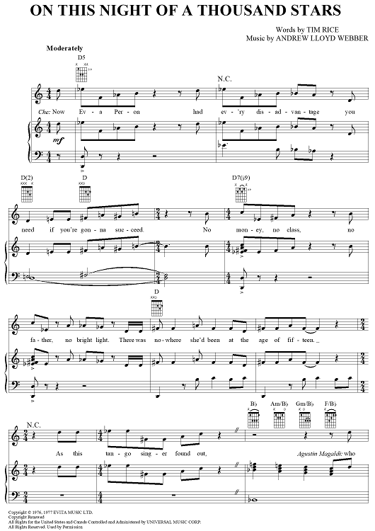 Digital Sheet Music for On This Night of a Thousand Stars by Andrew Lloyd Webber, Tim Rice scored for Piano/Vocal/Chords; id:366152