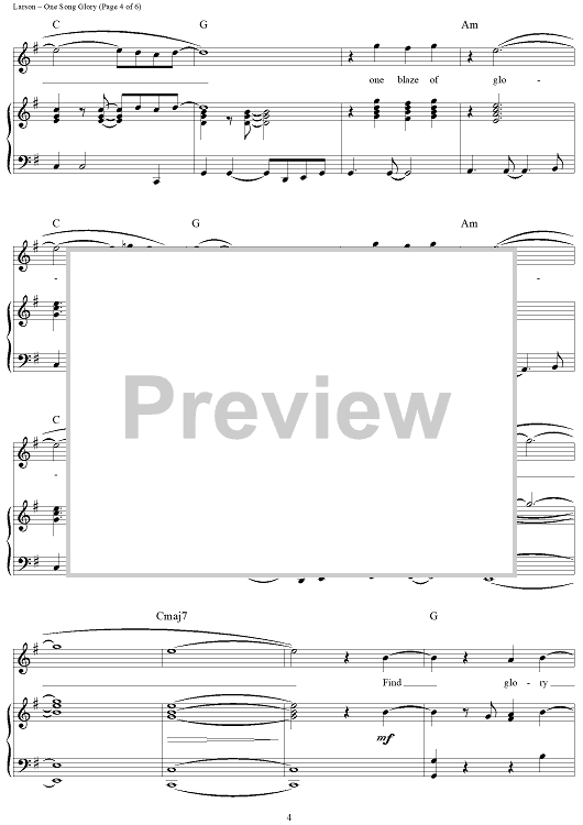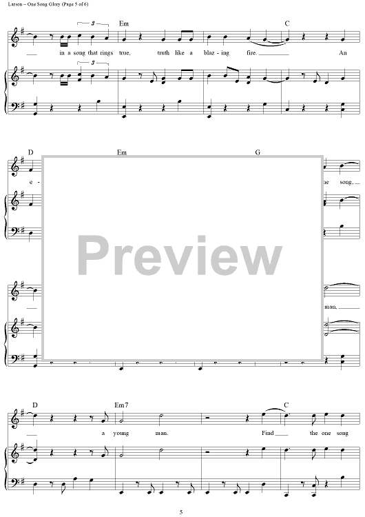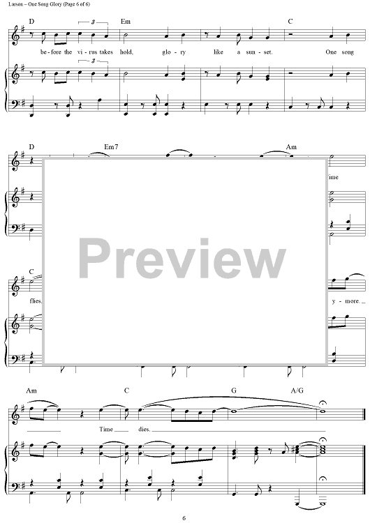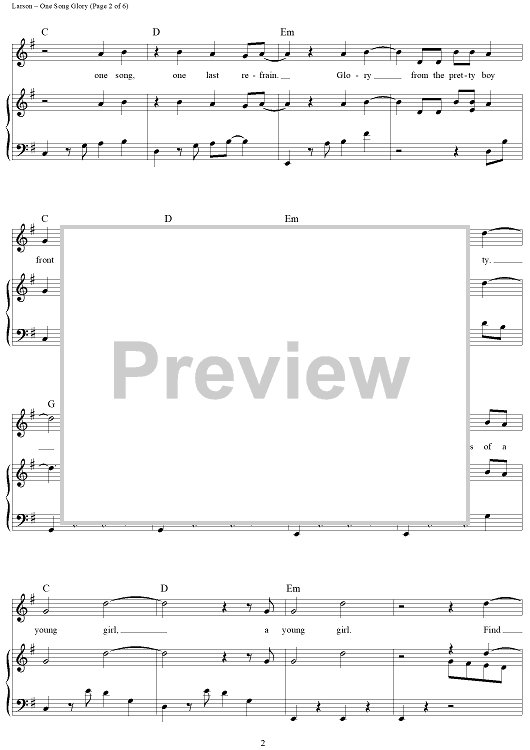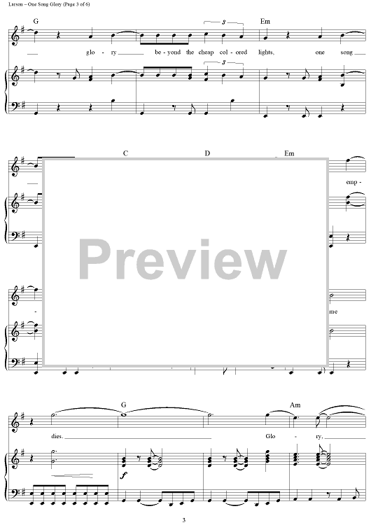 Digital Sheet Music for One Song Glory by Jonathan Larson scored for Piano/Vocal/Chords; id:362989