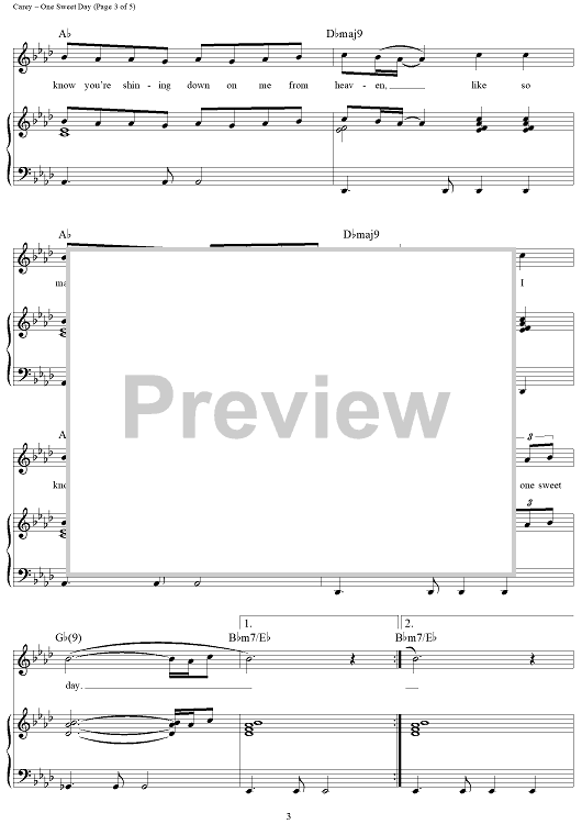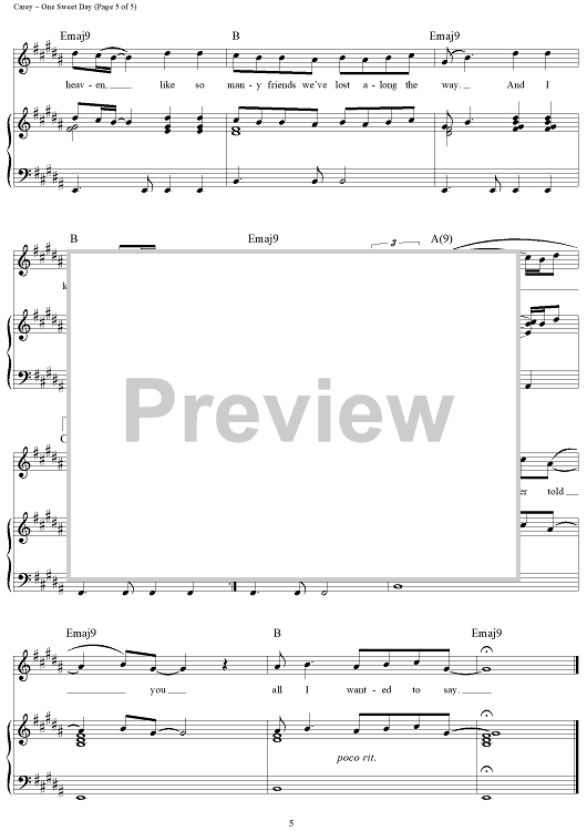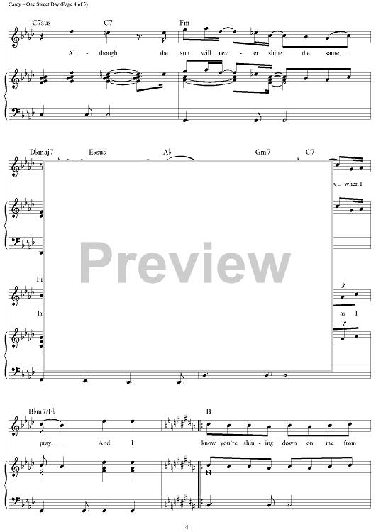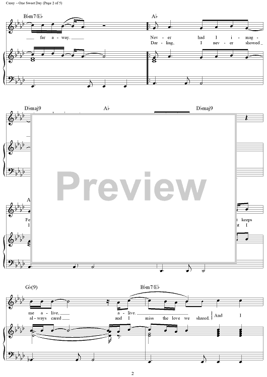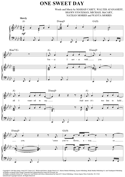 Digital Sheet Music for One Sweet Day by Mariah Carey, Wally Afanasieff, Wanya Morris, Michael McCary, Nathan Morris, Shawn Stockman scored for Piano/Vocal/Chords; id:362963
