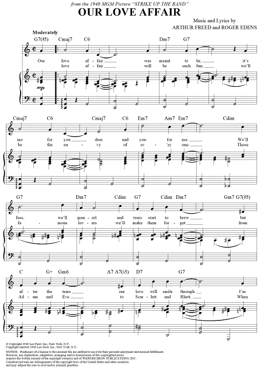 Digital Sheet Music for Our Love Affair by Judy Garland, Roger Edens, Arthur Freed scored for Piano/Vocal/Chords; id:313438