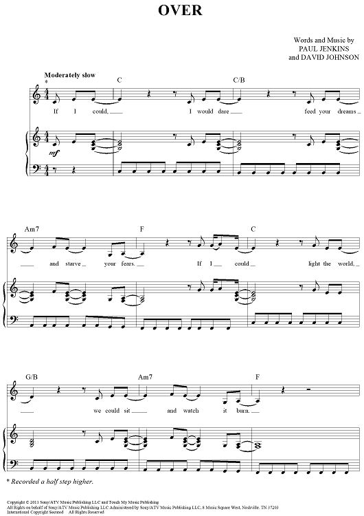 Digital Sheet Music for Over by David Johnson, Blake Shelton, Paul Jenkins scored for Piano/Vocal/Chords; id:444438