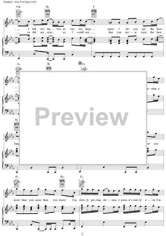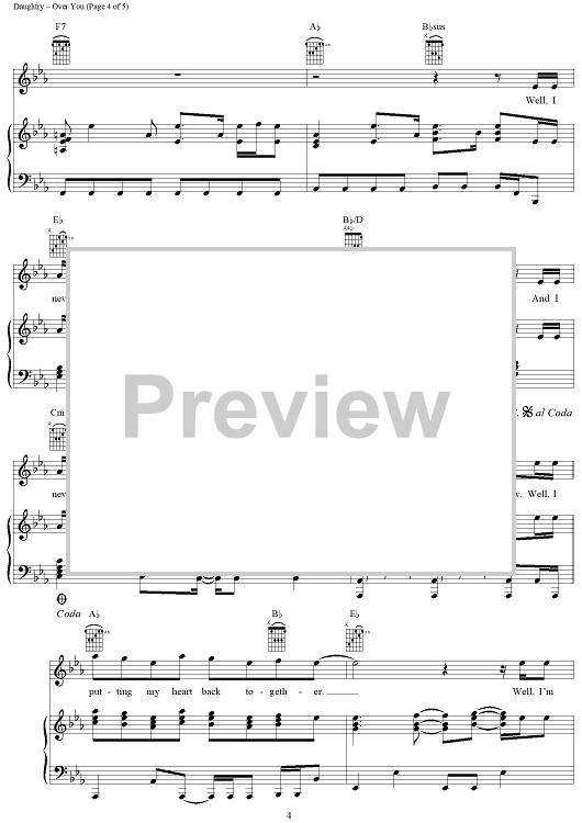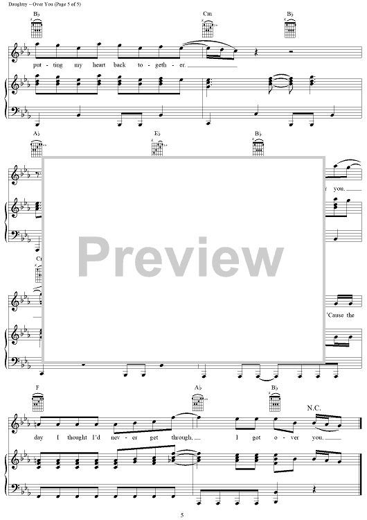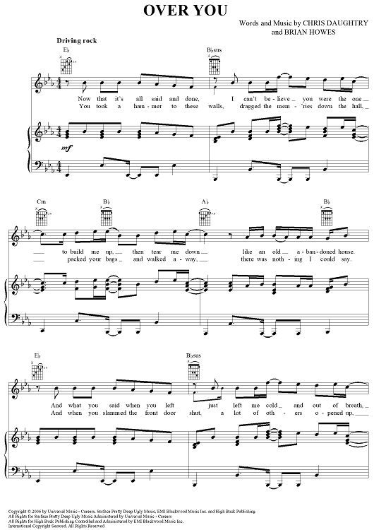 Digital Sheet Music for Over You by Chris Daughtry, Daughtry, Brian Howes scored for Piano/Vocal/Chords; id:366193
