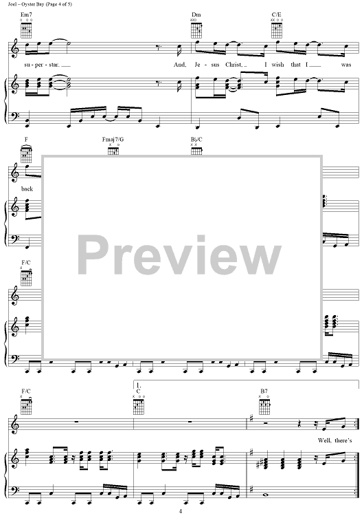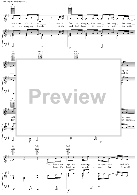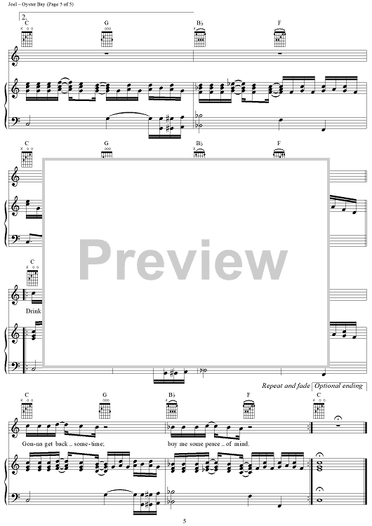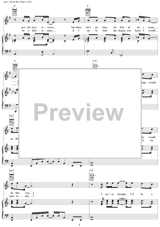 Digital Sheet Music for Oyster Bay by Billy Joel scored for Piano/Vocal/Chords; id:403197