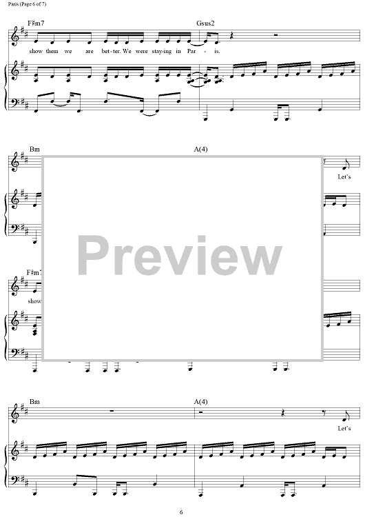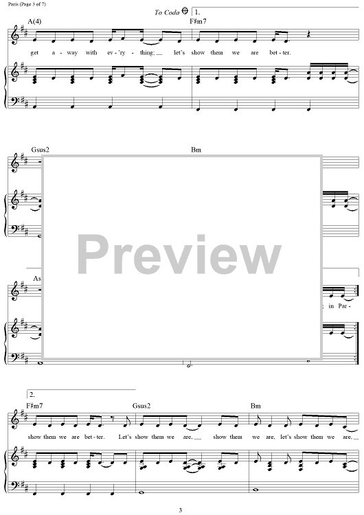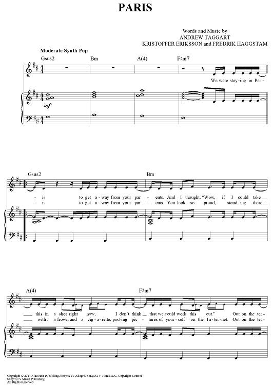 Digital Sheet Music for Paris by Andrew Taggart, The Chainsmokers, Kristoffer Eriksson, Fredrik Haggstam scored for Piano/Vocal/Chords; id:463816