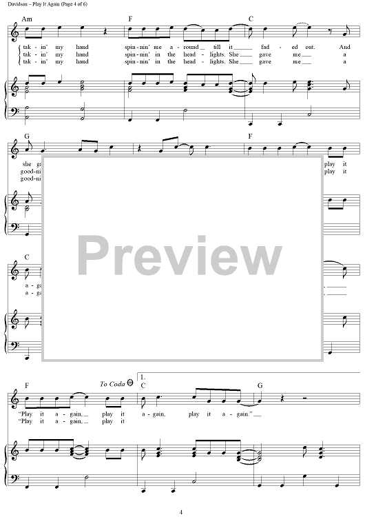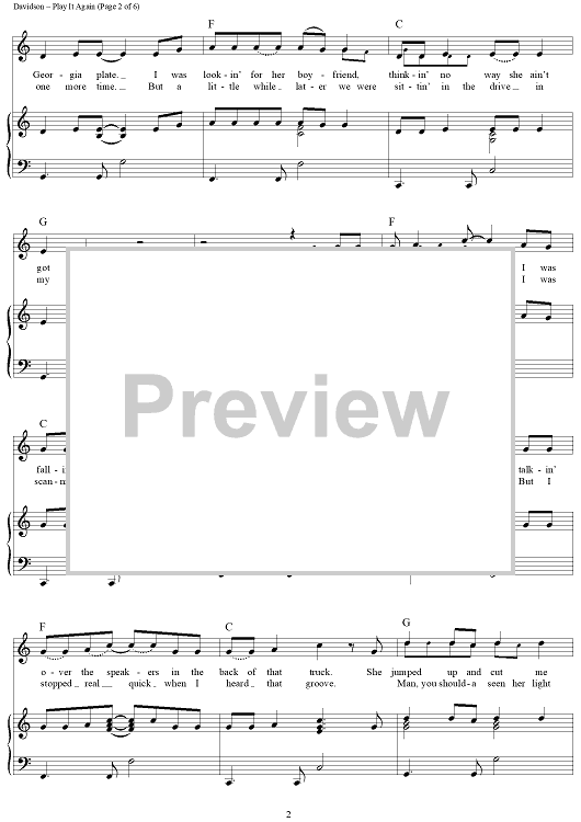 Digital Sheet Music for Play It Again by Ashley Gorley, Luke Bryan, Dallas Davidson scored for Piano/Vocal/Chords; id:441490