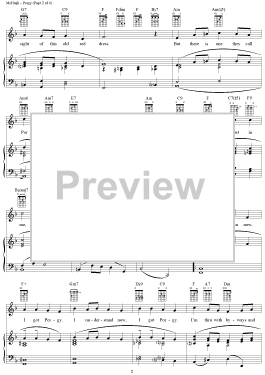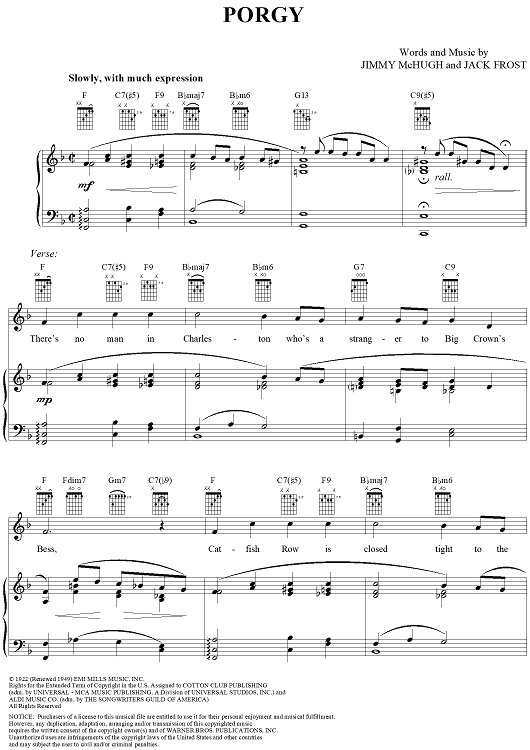 Digital Sheet Music for Porgy by Jimmy McHugh, Jack Frost scored for Piano/Vocal/Chords; id:287390