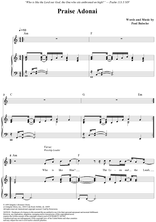 Digital Sheet Music for Praise Adonai by Paul Baloche scored for Piano/Vocal/Chords; id:308293
