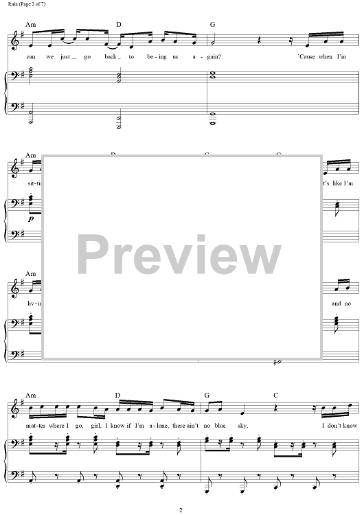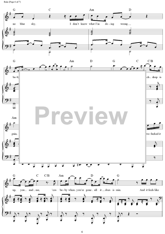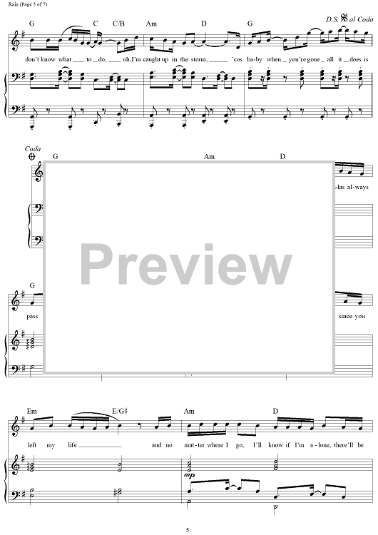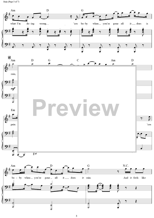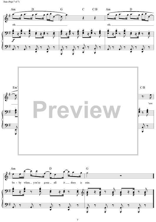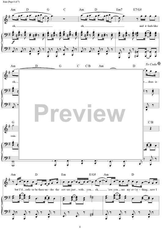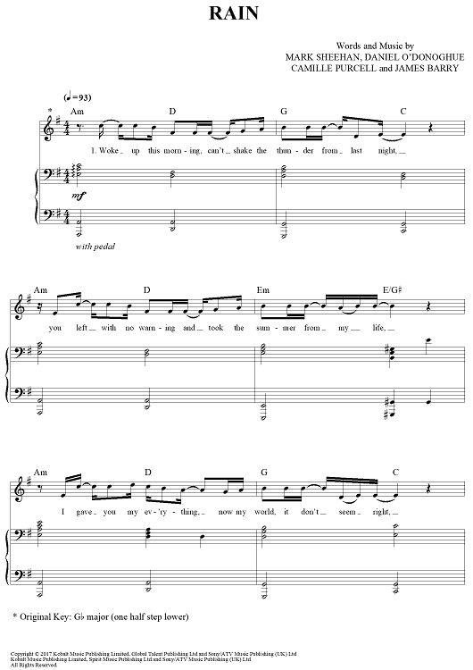 Digital Sheet Music for Rain by The Script, Mark Sheehan, Daniel O'Donoghue, James Barry, Camille Purcell scored for Piano/Vocal/Chords; id:465427