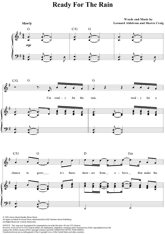 Digital Sheet Music for Ready for the Rain by Shawn Craig, Leonard Ahlstrom scored for Piano/Vocal/Chords; id:115749