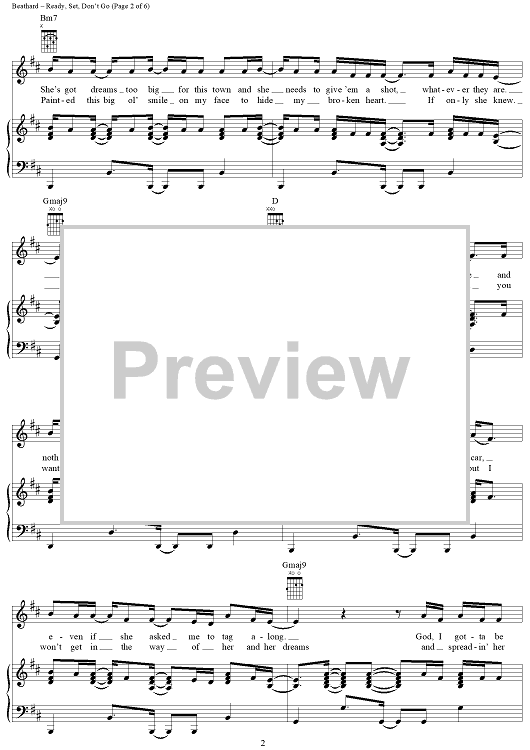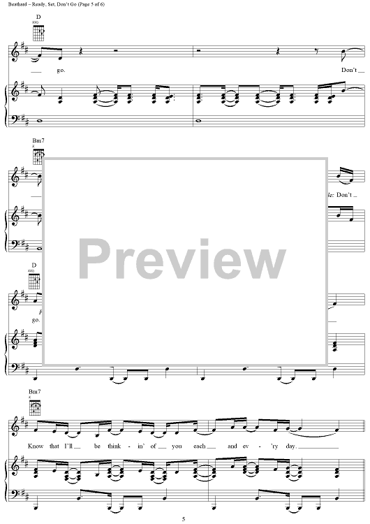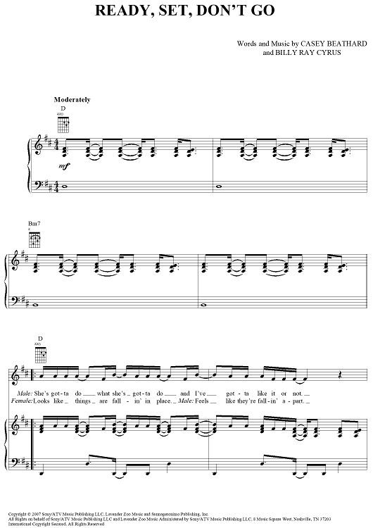Digital Sheet Music for Ready, Set, Don't Go by Billy Ray Cyrus, Casey Beathard, Miley Cyrus scored for Piano/Vocal/Chords; id:366939