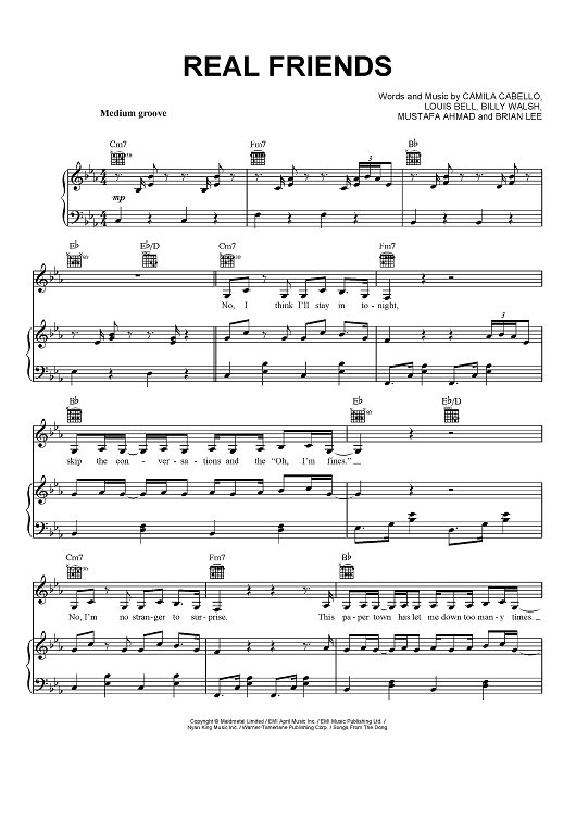 Digital Sheet Music for Real Friends by Louis Bell, Camila Cabello, Billy Walsh scored for Piano/Vocal/Chords; id:465893