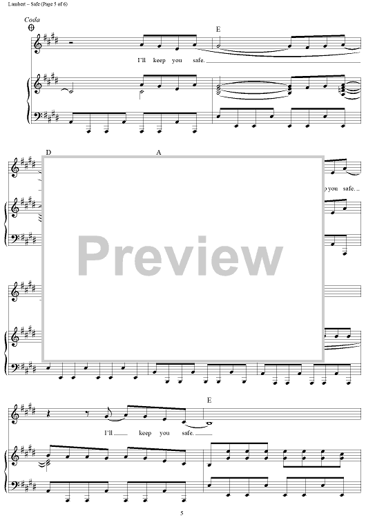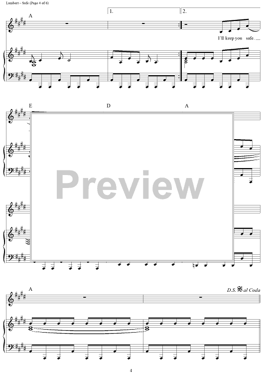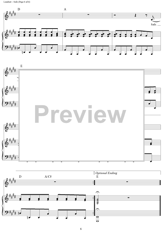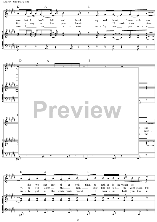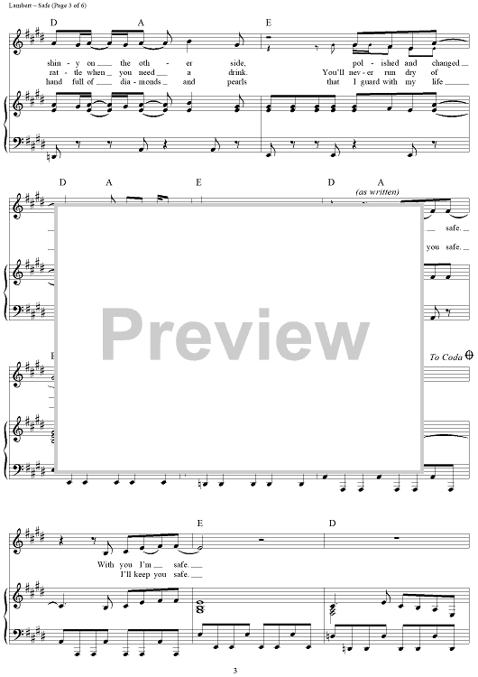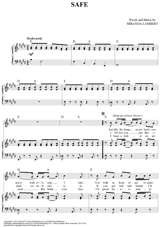 Digital Sheet Music for Safe by Miranda Lambert scored for Piano/Vocal/Chords; id:443781