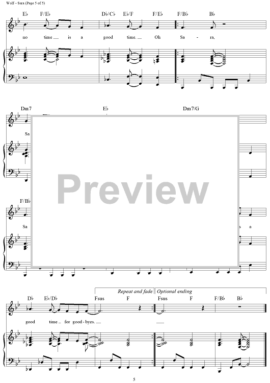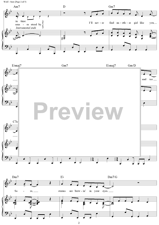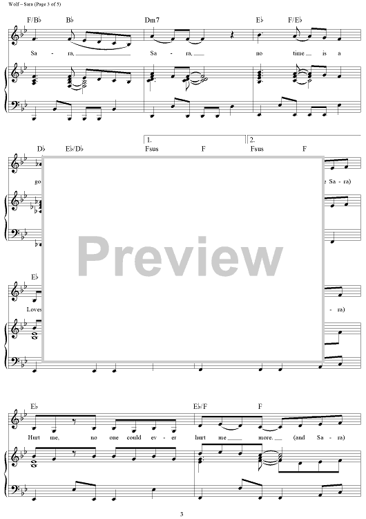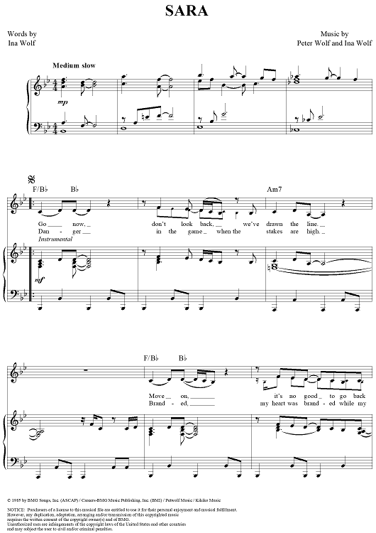 Digital Sheet Music for Sara by Starship, Peter and the Wolf, Ina Wolf scored for Piano/Vocal/Chords; id:321585