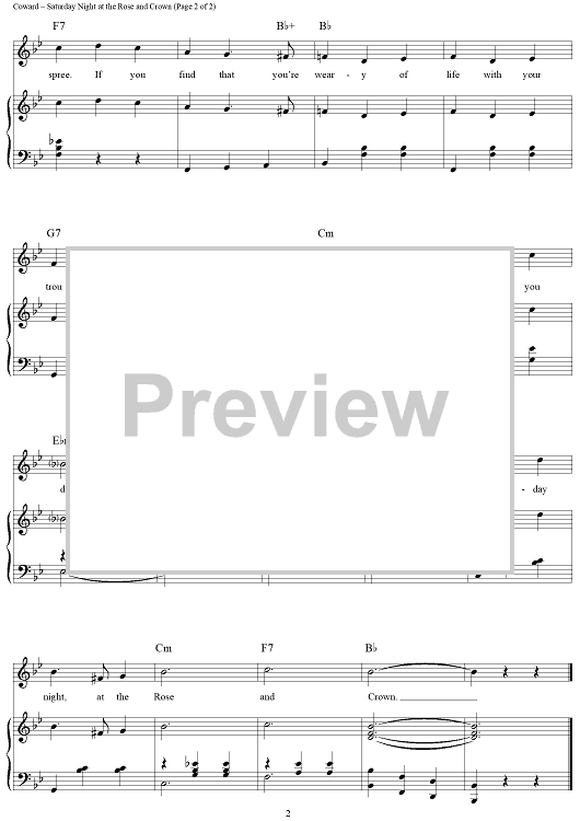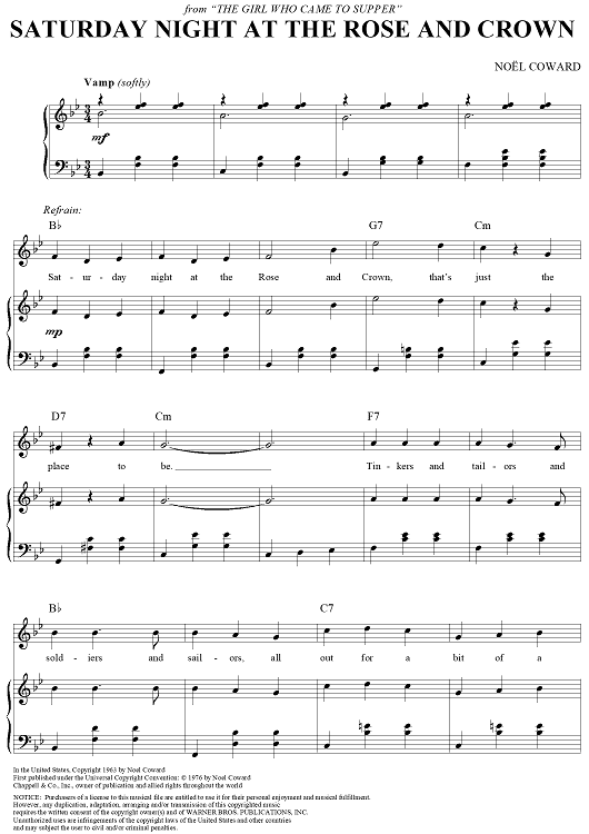 Digital Sheet Music for Saturday Night at the Rose and Crown by Noel Coward scored for Piano/Vocal/Chords; id:357030