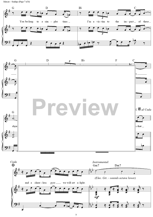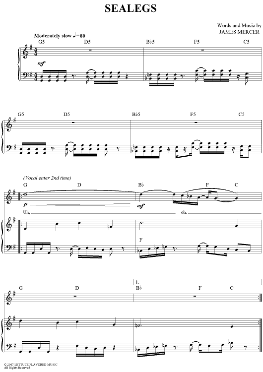 Digital Sheet Music for Sealegs by James Mercer, The Shins scored for Piano/Vocal/Chords; id:418727