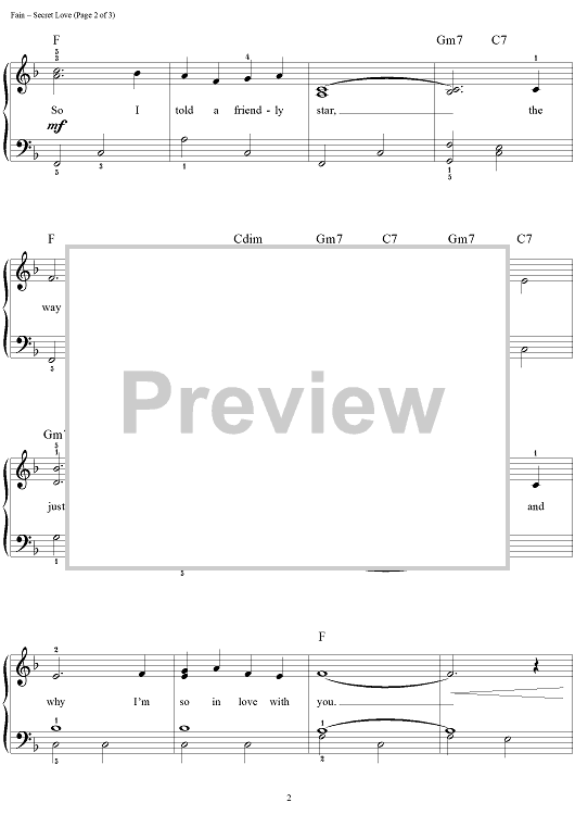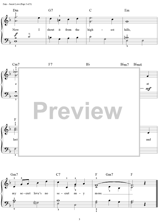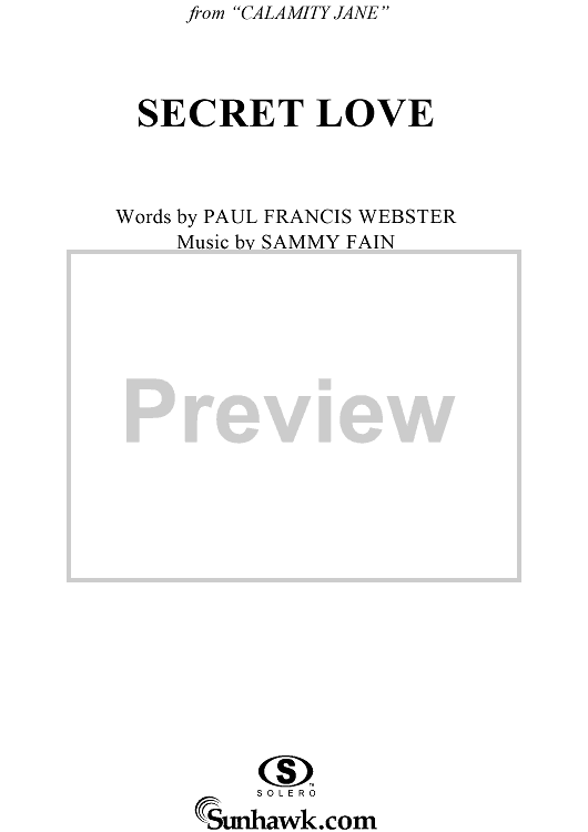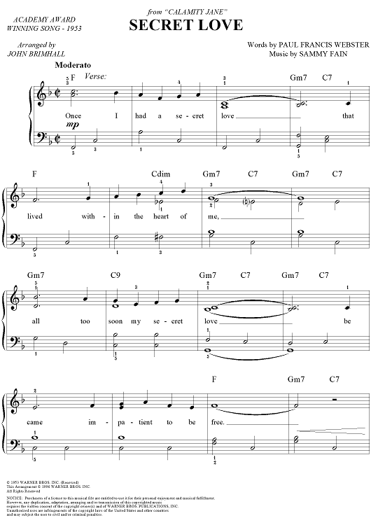 Digital Sheet Music for Secret Love by Sammy Fain, Paul Francis Webster, John Brimhall scored for Easy Piano/Vocal; id:269381