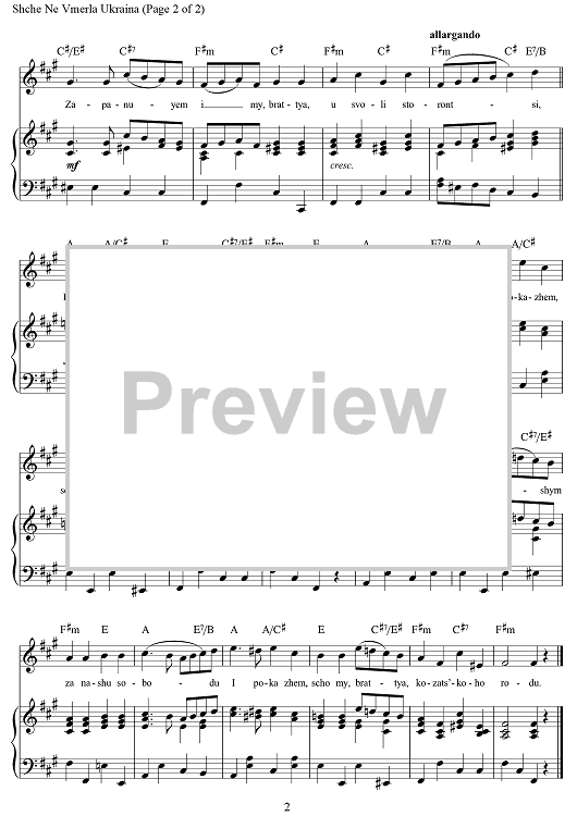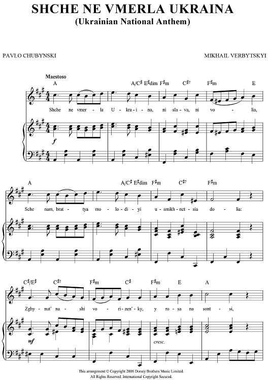 "Shche Ne Vmerla Ukraina (Ukranian National Anthem)" Sheet Music by Mikhail Verbytsky