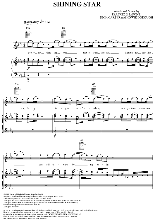Digital Sheet Music for Shining Star by Backstreet Boys, Franciz & LePont, Nick Carter, Howie Dorough scored for Piano/Vocal/Chords; id:284327