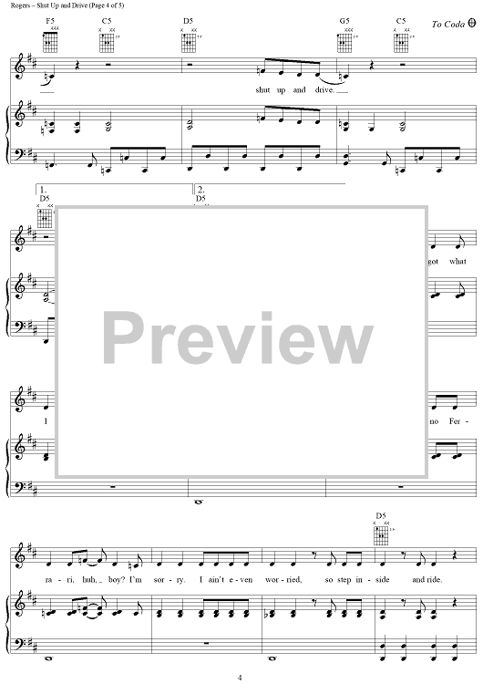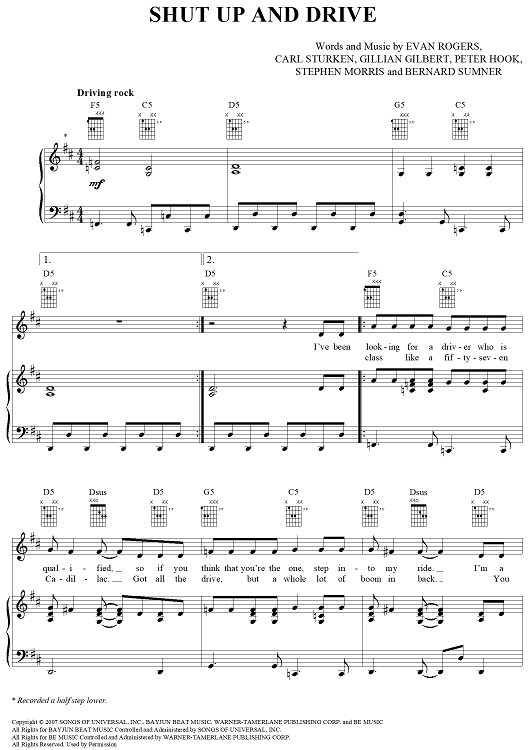 Digital Sheet Music for Shut Up and Drive by Evan Rogers, Stephen Morris, Peter Hook, Bernard Sumner, Gillian Gilbert, Carl Sturken, Rihanna scored for Piano/Vocal/Chords; id:365460