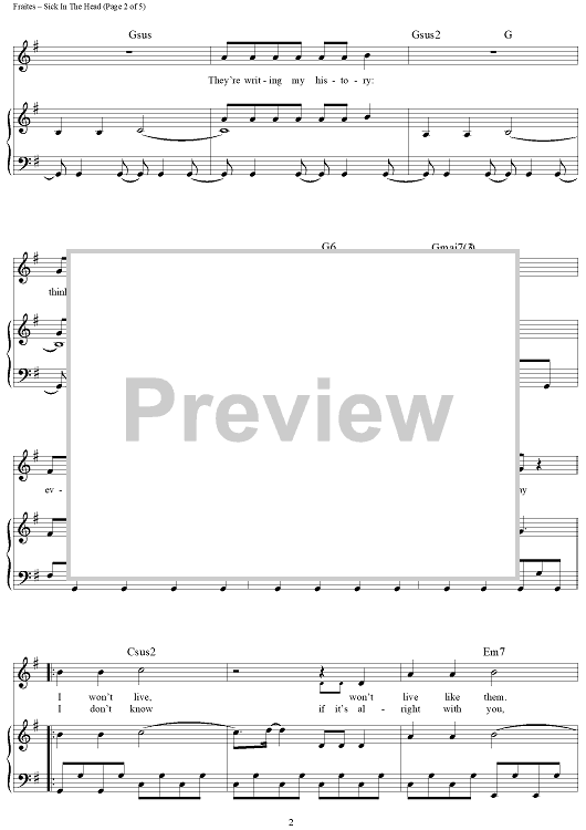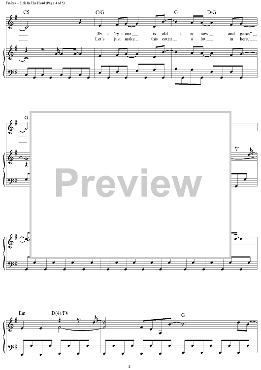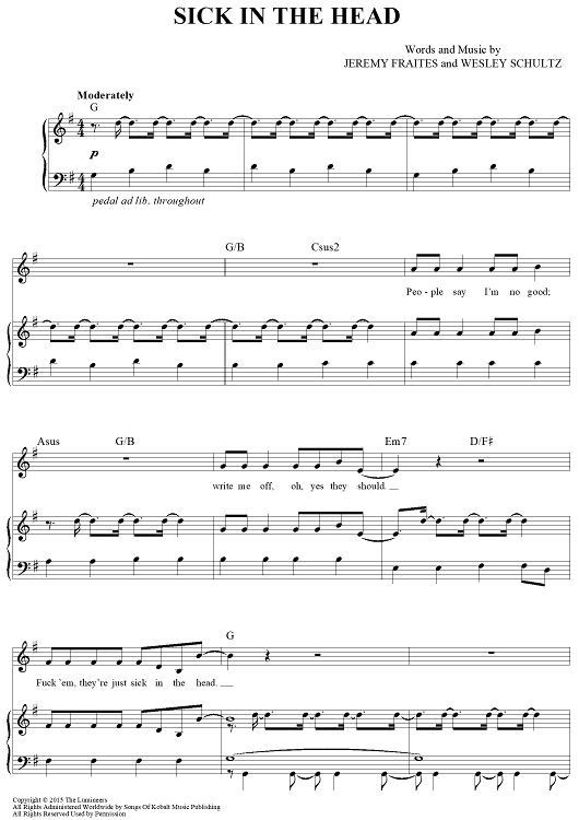 Digital Sheet Music for Sick In The Head by Jeremy Fraites, Wesley Schultz, The Lumineers scored for Piano/Vocal/Chords; id:461079